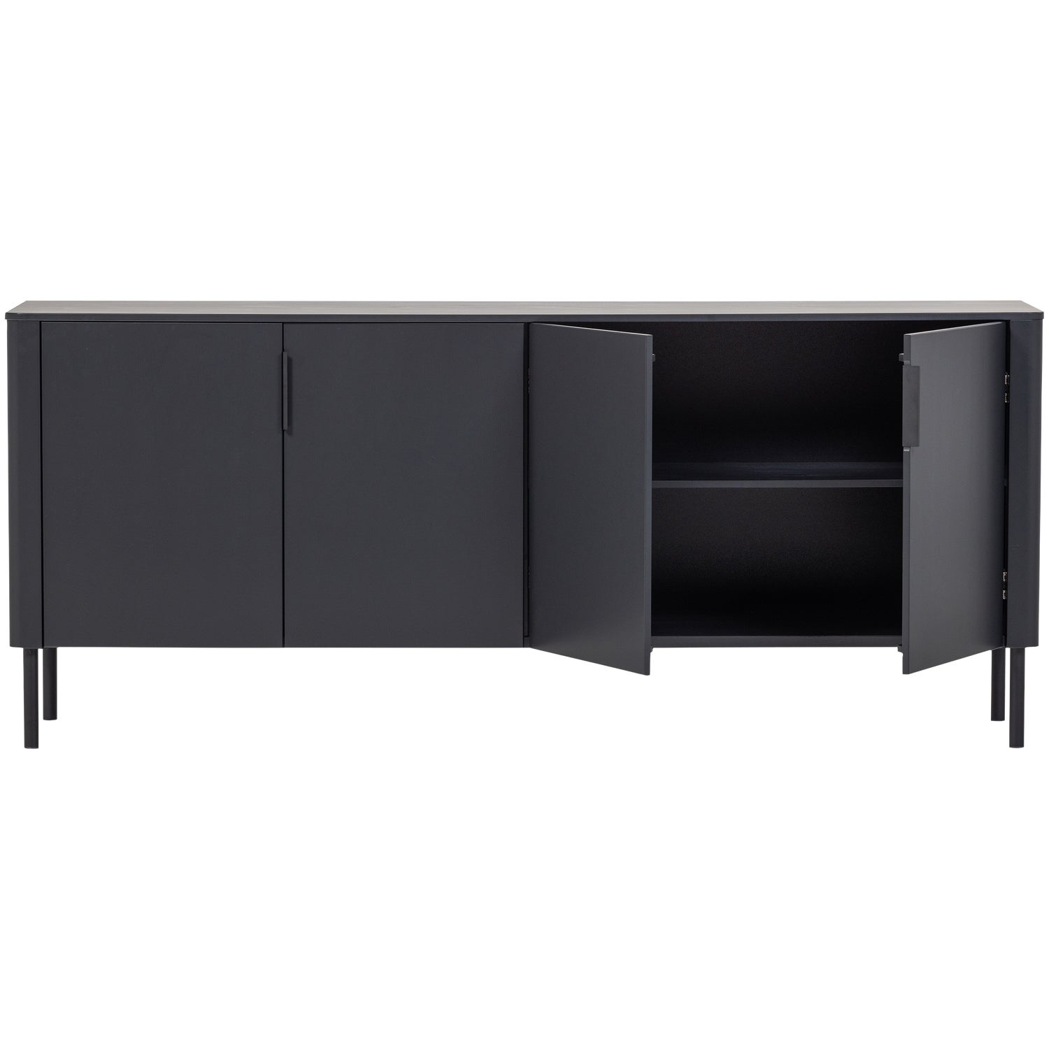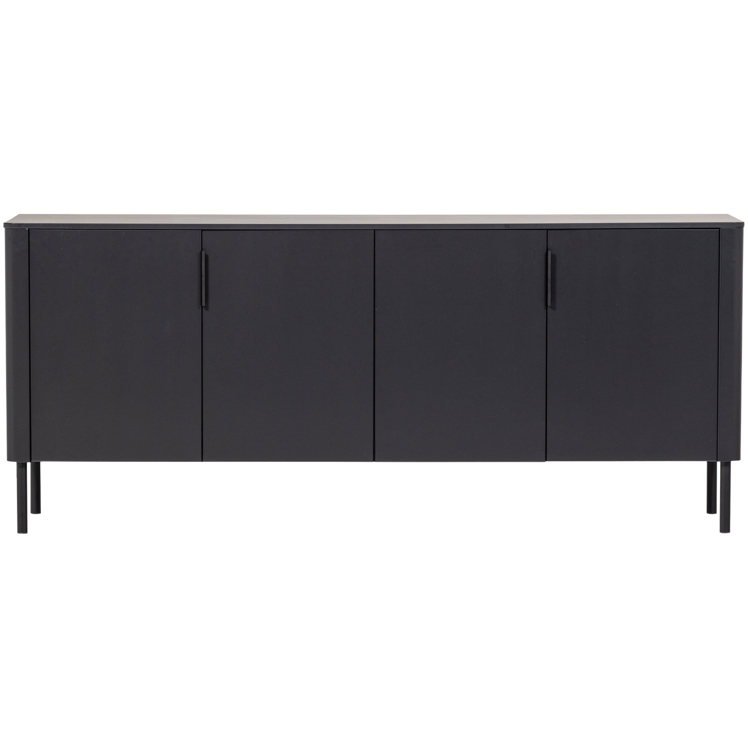 – Spacious sideboard with timeless design – Made from FSC Mix-certified pine wood – Finished in matte black – H 85 cm x W 201 cm x D 44 cm Sleek, modern, and functional. The Gunnar sideboard from Dutch interior brand WOOOD is a stylish storage solution with endless possibilities. Thanks to the four doors with subtle handles, you can easily store all your belongings out of sight, while the straight lines and refined finish exude calm and elegance. The sideboard is made from solid pine wood and finished in matte black. Behind the doors is a spacious storage compartment with a shelf, ideal for crockery, books, or home accessories.